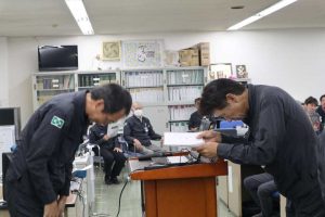 朝礼では、局長表彰と永年勤続15年表彰4名が発表されました。