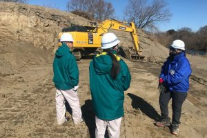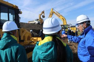 建築科の生徒さんですが、せっかくの機会ですので土木の現場も近くで見学して頂きました。
